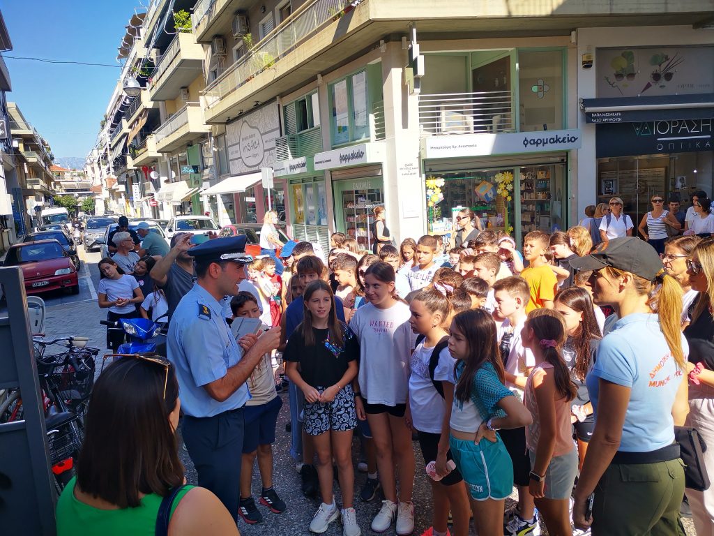 Η δράση συνεχίστηκε με έναν ξεχωριστό περίπατο στην πόλη, ξεκινώντας από την πλατεία και διασχίζοντας τον ποταμό Ληθαίο και πεζοδρόμους, ενώ έπειτα επέστρεψαν στο σημείο της αφετηρίας. Κατά τη διάρκεια της διαδρομής, εκπρόσωποι της Τροχαίας και της Δημοτικής Αστυνομίας ενημέρωσαν τα παιδιά για θέματα όπως οι διαβάσεις πεζών, η χρήση σημάτων και η ασφαλής συμπεριφορά στον δρόμο. TrikalaVoice