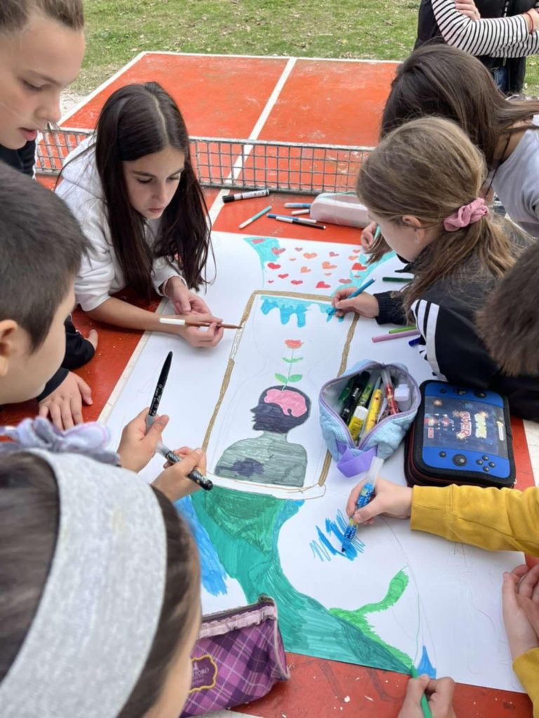 Με αφορμή την Παγκόσμια Ημέρα Ψυχικής Υγείας, στήσαμε το δικό μας υπαίθριο εργαστήρι τέχνης. Υπό την καθοδήγηση της εικαστικού μας, κας Ιακωβάκη Αφροδίτης, μοιραστήκαμε τα χρώματά μας, ανταλλάξαμε ιδέες για τα σχέδιά μας και βοηθήσαμε ο ένας τον άλλον. Η δημιουργικότητα άνθισε μέσα από τη συζήτηση και τη συνεργασία, αποδεικνύοντας πως όταν μοιραζόμαστε την έμπνευση, το αποτέλεσμα γίνεται ακόμα πιο όμορφο. Οι ομαδικές αυτές δημιουργίες θα αποσταλούν στο Υπουργείο Παιδείας (Υ.ΠΑΙ.Θ.Α.) για να ταξιδέψουν παντού το μήνυμα της συλλογικής έκφρασης.
