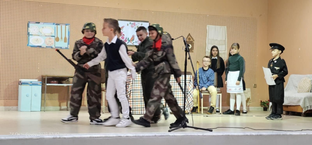 Υπό την καθοδήγηση της δασκάλας τους, κας Βασιλικής Μπακάτση, οι μαθητές της Δ’ Τάξης μας ταξίδεψαν στον χρόνο, ζωντανεύοντας τις ηρωικές στιγμές του Έπους του ’40 μέσα από ποιήματα, θεατρικά δρώμενα και ιστορικές αφηγήσεις. Μας υπενθύμισαν τις αξίες της αυτοθυσίας, της ομοψυχίας και της αγάπης για την πατρίδα, αποδεικνύοντας πως η νέα γενιά γνωρίζει να τιμά την ιστορία της.