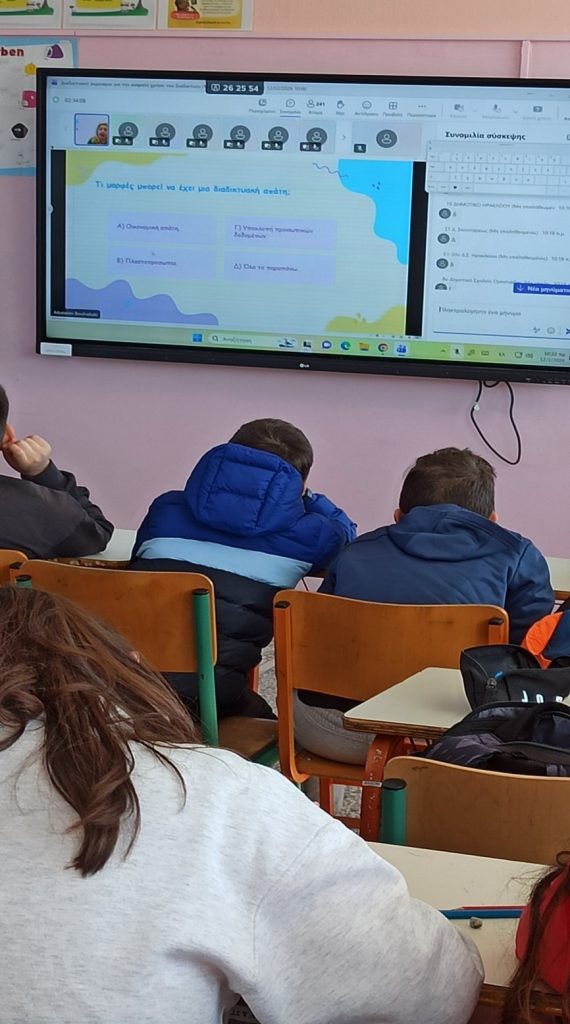 Στις 12 Φεβρουαρίου 2026 , οι μαθητές και οι μαθήτριες των τμημάτων ΣΤ1 και ΣΤ2 του σχολείου μας «συνδέθηκαν» με τον ψηφιακό κόσμο με έναν διαφορετικό τρόπο. Με την καθοδήγηση των δασκάλων τους, Φωτεινής Τέντου και Χρυσούλας Κούζα, συμμετείχαν σε μια εξαιρετικά ενδιαφέρουσα διαδικτυακή ενημέρωση από τον φορέα SaferInternet4Kids.gr.
